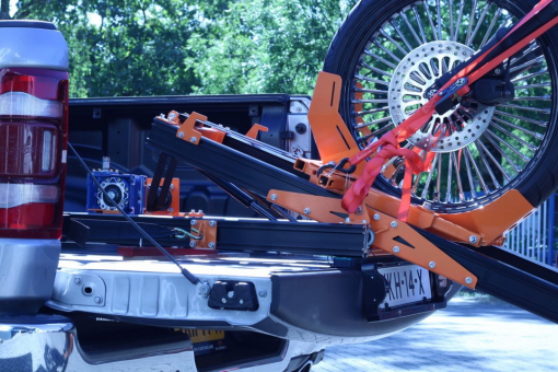 The motorcycle ramp can carry bicycles up to 550 kg and a height of up to 150 cm.