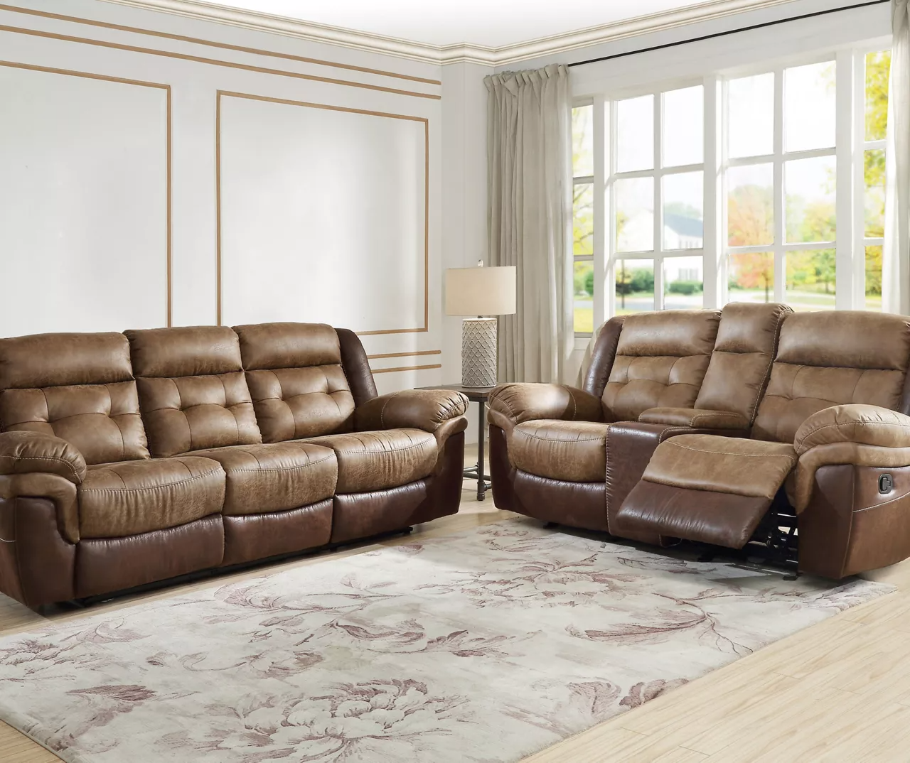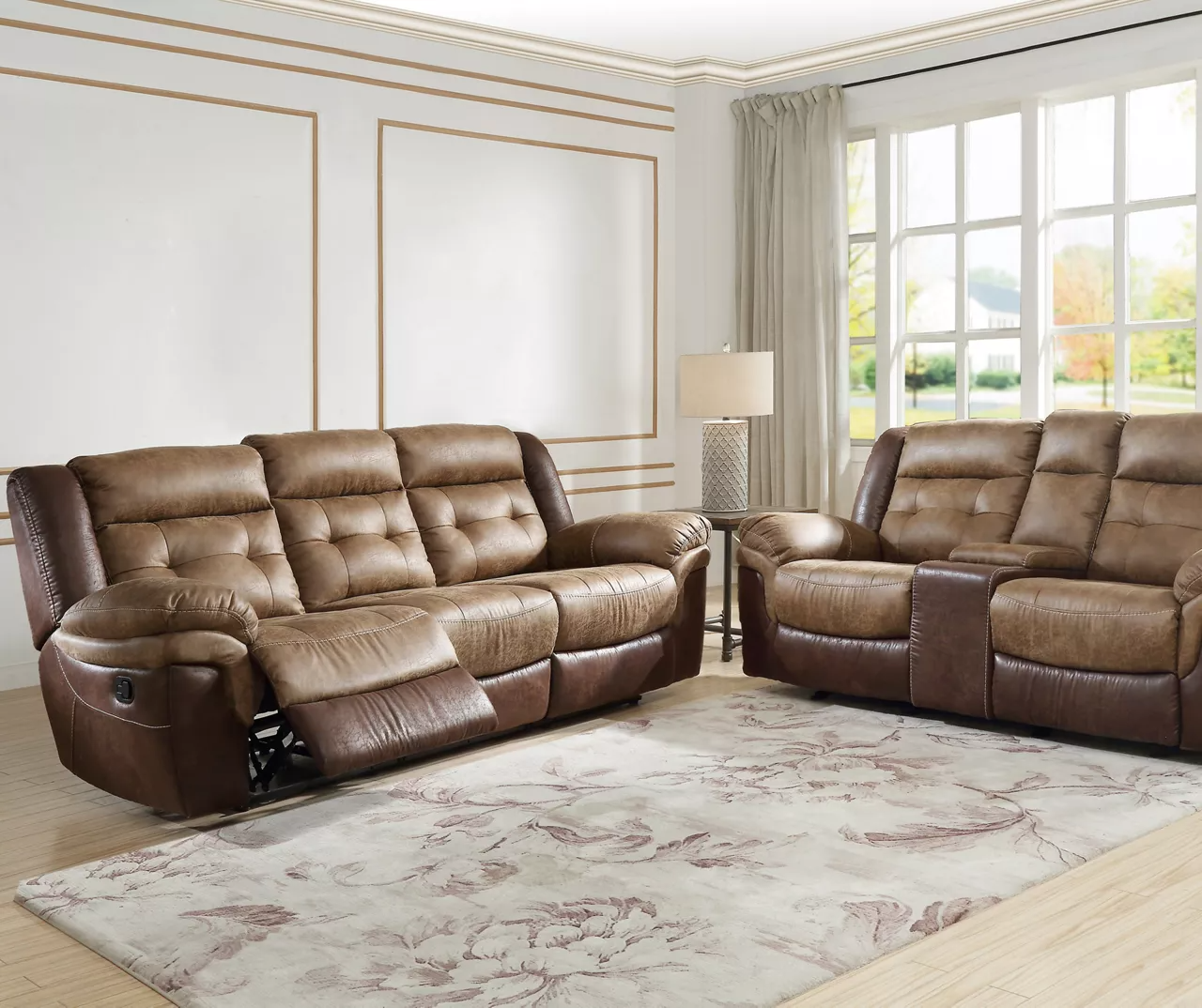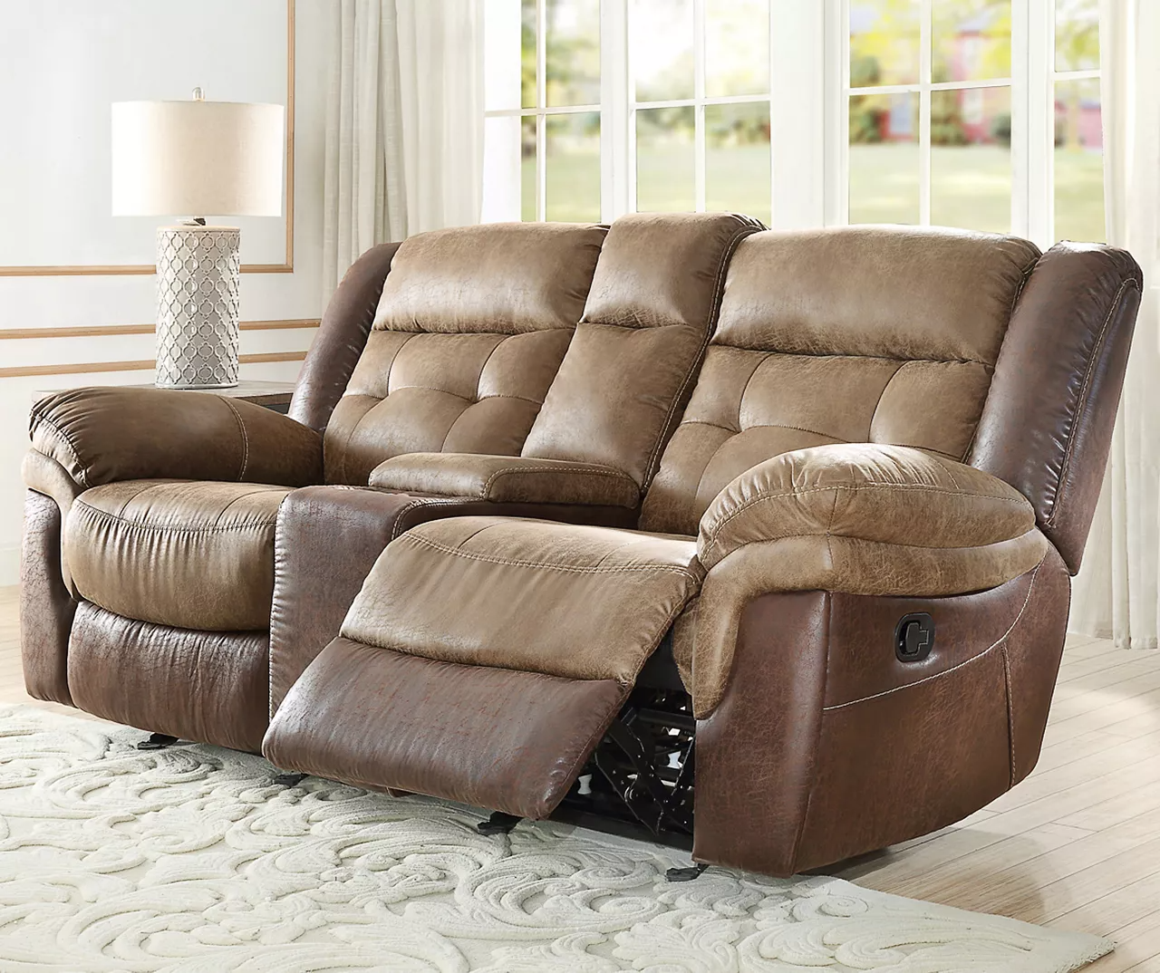 - Gliding console loveseat with dual seat recliners